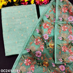 Light pink designer premium silk cotton unstitched salwar material, zari woven design all over(thin fabric, lining needed)matching spun cotton bottom, heavy embroidered pure organza full length dupatta. CODE OC241402