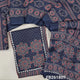 Dark blue pure cotton unstitched salwar material(lining optional)ajrak printed yoke with zari work, vertical printed all over, printed cotton bottom, printed full length mul cotton dupatta. FB261807
