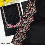 Dark blue semi georgette unstitched salwar material, embroidered& sequins work on yoke(thin fabric, lining needed)matching silky fabric provided for both bottom& lining, semi georgette dupatta with heavy embroidered on one side. CODE JA251806