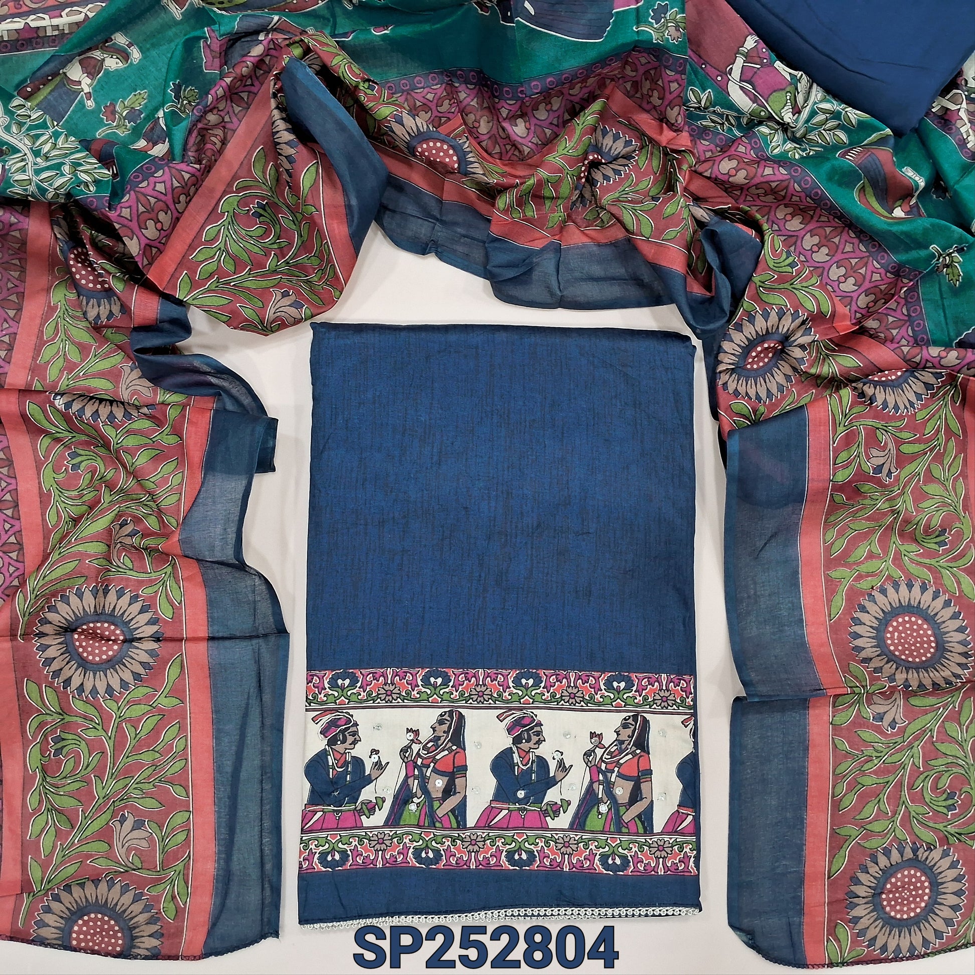 Dark Blue digital printed fancy silk cotton unstitched salwar material, printed daman with bead work (Soft, Lning Needed) matching spun cotton bottom, pure cotton printed dupatta. SP252804