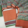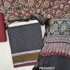 Dark maroon soft silk cotton unstitched salwar material(lining needed)printed all over,contrast printed border, dark brown cotton bottom,ajrak printed full length soft silk cotton with gold tissue borders TAPINGS NEEDED.FB260508