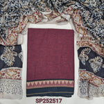 Dark maroon South handloom cotton unstitched salwar material, thread woven borders (Lining Needed) hand block printed kalamkari pure cotton bottom and mul cotton full length Dupatta (TAPINGS NEEDED). SP252517