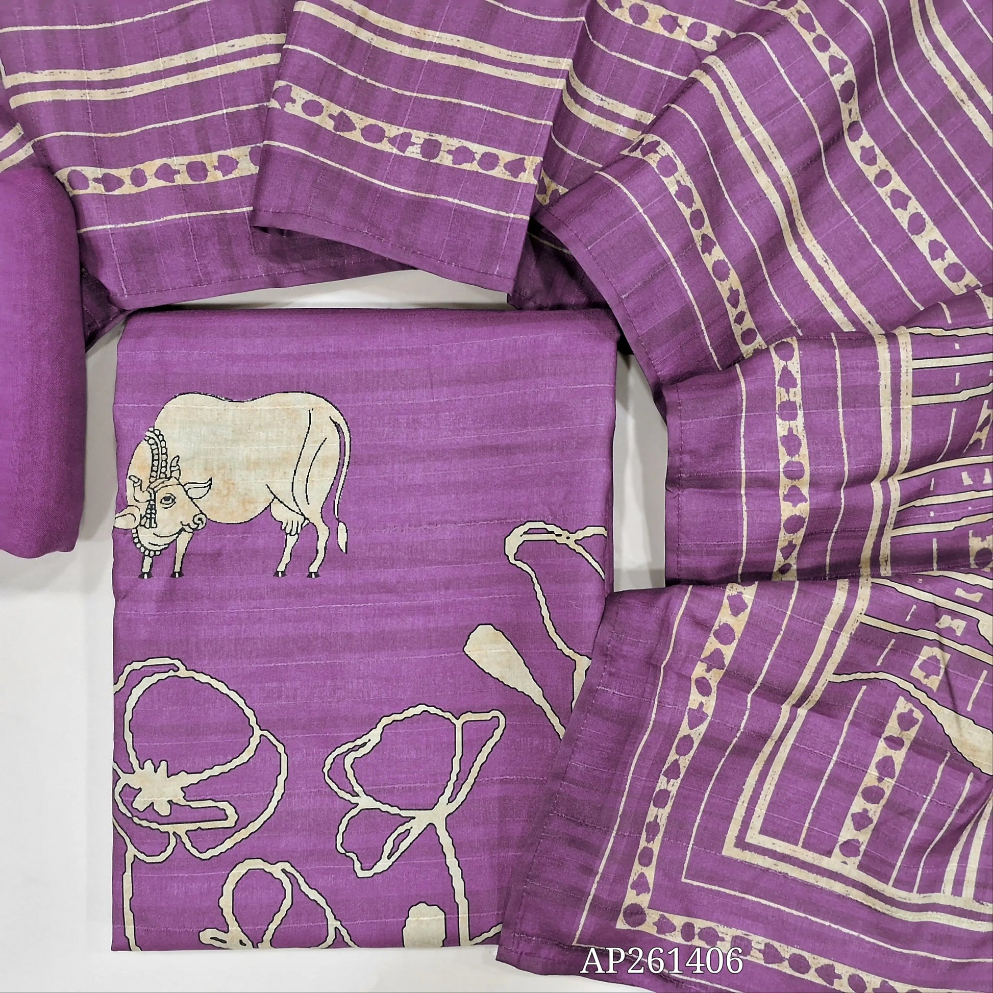 Dark purple digital printed semi gicha unstitched salwar material,panel design (Thin, Lining Needed) santoon bottom, digital printed semi gicha dupatta. AP261406