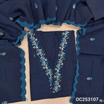 Deep wine purple silk cotton unstitched salwar material, (soft, silky,lining optional)V neck with embroidered and lace work, embroidery on front,silky bottom, embroidery on soft silk cotton dupatta with scallop edges.. OC253106