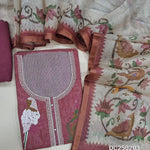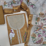 Designer Bluish Grey tissue kota unstitched salwar material(lining needed) colorful embroidery work on yoke, printed daman, matching santoon bottom, digital printed tissue silk cotton dupatta with tissue borders.DC250201
