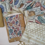 Designer digital printed chocolate Brown premium silk cotton unstitched salwar material (lining needed) digital floral print, thread, sequins work on yoke, matching santoon bottom, digital printed silk cotton dupatta with jamdani pallu & tassels. JA262816