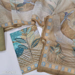 Designer digital printed olive Green silk cotton unstitched salwar material (lining needed) thread, zardozi work on front, matching santoon bottom, digital printed soft silk cotton dupatta. DC252913