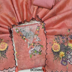 Designer mehandhi Yellow pure tissue linen unstitched salwar material (thin, lining needed) v neck, hand embroidery work on front, matching santoon bottom, floral print & hand embroidery work on tissue linen full length dupatta. DC250912