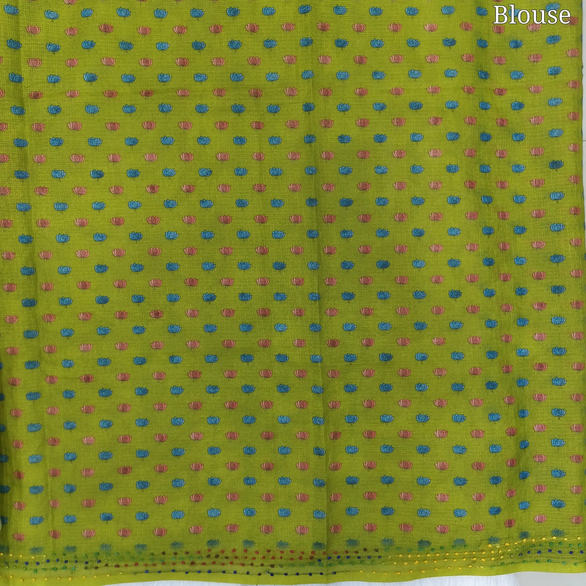 Mehandhi Green Premium kota silk saree (lightweight, thin, soft) colorful floral prints highlighted with hand embroidery work, rich pallu. Digital printed kota silk blouse. NS50