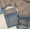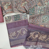 Designer light chocolate Brown premium tussar silk cotton unstitched salwar material (lining needed) kalamkari print, zari woven organza daman, matching santoon bottom, digital kalamkari printed tussar silk cotton dupatta with tassels. JA261518