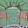 Designer Pastel Green Muslin Jamdani unstitched salwar material, Weaving yoke (Thin, Lining Needed) NO BOTTOM, Jamdani woven full length dupatta with paithani weaving on pallu and handamde tassels. NV250104
