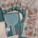 Designer bright Pink tissue kota unstitched salwar material(lining needed) colorful embroidery work on yoke, matching santoon bottom, digital printed tissue silk cotton dupatta with tissue borders.DC250203