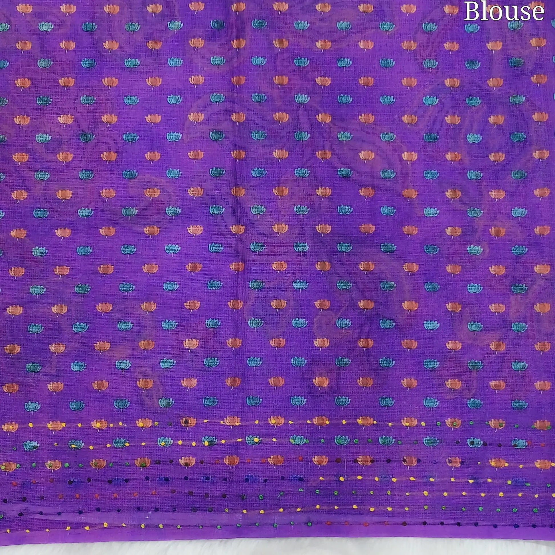 Purple Premium kota silk saree (lightweight, thin, soft) colorful floral prints highlighted with hand embroidery work, rich pallu. Digital printed kota silk blouse. NS52