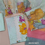 Digital floral printed pastel Blue soft cotton unstitched salwar material (lining needed) lace work on yoke, matching spun cotton bottom, digital floral printed silk cotton dupatta. DC251821