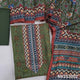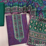 Digital printed olive Green silk cotton unstitched salwar material (lining needed) sequins, bead work on yoke, matching spun cotton bottom, digital printed silk cotton dupatta. NV253002