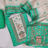 Digital printed mehandhi Green silk cotton unstitched salwar material (lining needed) zardozi work on yoke, matching spun cotton bottom, digital printed silk cotton dupatta. JA261115