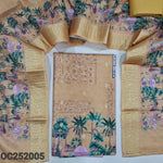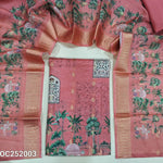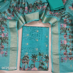 Digital printed pastel Blue silk cotton unstitched salwar material(thin, lining needed) zari woven buttas allover, matching spun cotton bottom, digital printed slub silk cotton dupatta with banarasi borders. OC252004