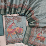 Pastel Pink & golden tint fancy tissue silk cotton unstitched salwar material(lining needed) digital print on daman, matching silky bottom, digital printed fancy tissue silk cotton dupatta. DC250518