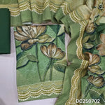 Digital floral printed Purple silk cotton unstitched salwar material (thin, lining needed) kantha stitch work on front, purple cotton bottom, digital print, kantha stitch work on silk cotton dupatta. DC250703