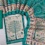 Digital warli printed brick Red silk cotton unstitched salwar material(lining needed) sequins work on yoke, matching santoon bottom, digital warli printed silk cotton dupatta. DC250209