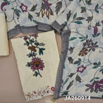 Mehandhi Yellow liquid fabric unstitched salwar material, embroidered on front(lining needed)matching liquid fabric bottom, digital printed soft mixed cotton dupatta. JA260913