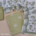 Light onion Pink semi linen unstitched salwar material (textured, lining needed) floral embroidery on front, matching santoon bottom, floral printed semi linen dupatta. DC253010