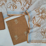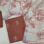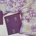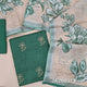 Teal Green semi linen unstitched salwar material (lining optional) floral embroidery work on front, matching santoon bottom, floral printed semi linen dupatta. JA260316