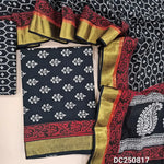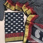 Floral printed Black cotton unstitched salwar material (soft, lining needed) golden borders on daman, printed cotton bottom, printed cotton full length dupatta with bolden borders. DC250817 (TAPING NEEDED)