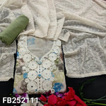Floral printed pure cotton unstitched salwar material, fancy lace& real mirror work on yoke(lining optional)lining provided, NO BOTTOM, schiffli embroidered pure cotton dupatta with lace tapings. CODE FB252110