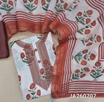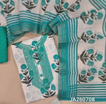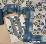 Floral Printed half White premium linen salwar material (textured, lining needed) tread & sequins work on yoke, yellow floral printed allover, yellow silky bottom, stripes, floral printed linen dupatta with tissue borders. JA260709
