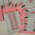 Light Beige semi linen unstitched salwar material (lining needed) floral print, stitch work on yoke, pastel Pink silky bottom, floral printed semi linen dupatta. JA261508