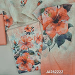 Floral printed pastel Blue& half white semi linen unstitched salwar material(lining needed) floral print, bead work on daman, matching silky bottom, digital floral printed semi linen dupatta (TAPING NEEDED). JA262219