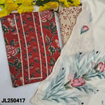 Dark green floral printed pure soft cotton unstitched salwar material, lace work on yoke& daman(lining optional)printed cotton bottom, brush painted fancy chiffon dupatta with lace tapings. CODE JL250418