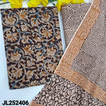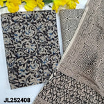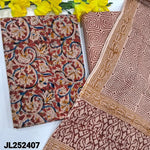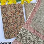 Olive green kalamkari hand block printed pure cotton unstitched salwar material(lining optional)hand block printed cotton bottom, block printed cotton full length dupatta(REQUIRES TAPINGS). CODE JL252405