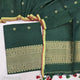 Designer Bottle Green pure linen jamdani unstitched salwar material, Rich weaving on daman (Textured, Lining Needed) NO BOTTOM, Jamdani woven full length dupatta with jamdani weaving on pallu and handmade tassels. NV252802