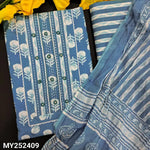 Light green printed pure cotton unstitched salwar material, foil& thread work on yoke(lining needed)printed cotton bottom, crinkled printed pure cotton dupatta. CODE MY252408