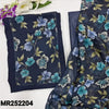 Dark green semi georgette unstitched salwar material, printed brasso chiffon yoke with bead work(lining needed)matching silky fabric provided for both bottom lining, brasso chiffon dupatta. CODE MR252203