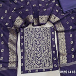Greenish grey fancy silk unstitched salwar material(silky, lining need)zari woven on yoke, zari weaving all over, matching silky bottom, benarasi weaving buttas on soft silk cotton dupatta with borders. NV251419