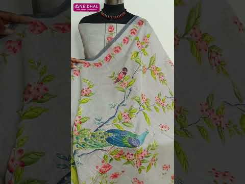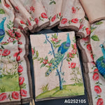 Light grey digital printed silk cotton unstitched salwar material, hand embroidery on yoke &front(thin, lining needed)matching santoon bottom, digital printed silk cotton dupatta with rich hand embroidery. CODE AG252103