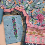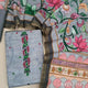 Grey semi tussar unstitched salwar material (Lining needed) colorful hand embroidery work on yoke, matching silk cotton bottom, digital kalamkari printed semi tussar dupatta. NV252712