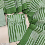 Ikat woven Grey handloom cotton unstitched salwar material (lining needed) with faux mirror work on yoke, matching handloom cotton bottom, ikat woven handloom cotton dupatta with tassels. DC252305