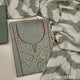 Greyish beige fancy silk cotton unstitched salwar material,pichwai embroidery work on yoke & daman, round notch neck (Lining Needed) matching cotton bottom, ikat printed silk cotton dupatta. NV252605