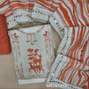Half white base premium silk cotton unstitched salwar material, zari and thread embroidery on yoke, (lining needed)green spun cotton bottom,abstract printed soft silk cotton dupatta with foil work borders with lace tapping. MR261414