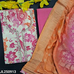 Half white base floral printed premium silk cotton unstitched salwar material, bead& zardozi work on yoke(lining needed)green santoon bottom, dual shaded soft silk cotton dupatta with antique zari work. CODE JL250914