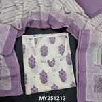 Half white base printed pure cotton semi stitched salwar material, faux mirror work on front(lining needed)bluish grey cotton bottom, printed pure kota cotton dupatta. Code MY251212