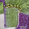 Purple & Green uppada silk unstitched salwar material (lining needed),hand block print allover,santoon bottom, hand block printed uppada silk dupatta (TAPING NEEDED). DC252225(inconsistency of color & block prints not defect)