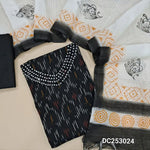 Ikat woven bottle Green handloom cotton unstitched salwar material (lining needed) thread work on yoke, matching drum dyed cotton bottom, block printed fancy kota silk cotton dupatta. DC253022