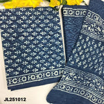 Indigo blue hand block printed pure cotton unstitched salwar material(lining needed)block printed cotton bottom, block printed pure mul cotton full length dupatta(REQUIRES TAPINGS). CODE JL251016