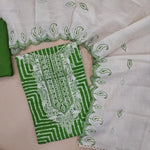 Ink Blue modal wax batik dyed unstitched salwar material, foil work on yoke (Lining Needed) Matching silky bottom, embroidered soft cotton dupatta. JA261708