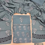 Lavender hand block printed premium muslin silk unstitched salwar material, faux mirror work on yoke(lining needed)matching silky bottom, hand block printed premium muslin silk dupatta. CODE SP251114